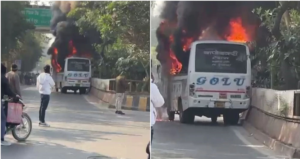 इंदौर में वाहन टकराने के बाद शुक्ला ब्रदर्स की बस में आग, यात्री सुरक्षित, फायर ब्रिगेड ने पाया काबू