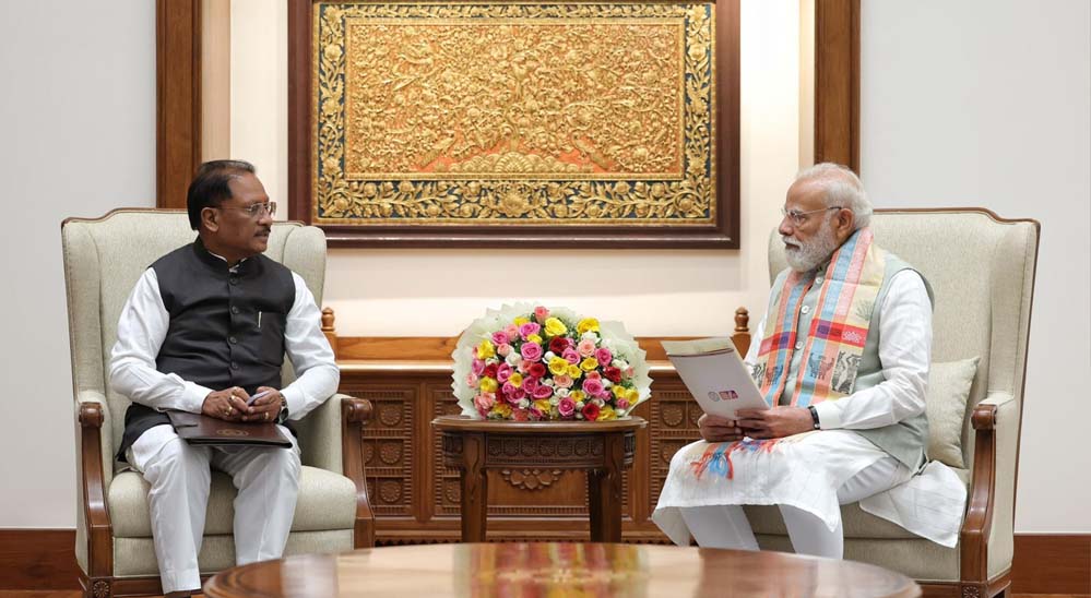 मुख्यमंत्री विष्णु देव साय ने नई दिल्ली प्रवास के दौरान आज प्रधानमंत्री नरेंद्र मोदी से भेंट कर बस्तर के समग्र, समावेशी एवं सतत विकास के लिए तैयार ‘बस्तर रोडमैप 2.0’ का विस्तृत खाका प्रस्तुत किया। मुख्यमंत्री साय ने प्रदेश की तीन करोड़ जनता की ओर से प्रधानमंत्री के प्रति आभार व्यक्त करते हुए कहा कि उनके संकल्प और मार्गदर्शन में 31 मार्च तक माओवाद के उन्मूलन के लक्ष्य को प्राप्त करने में महत्वपूर्ण सफलता मिली है।