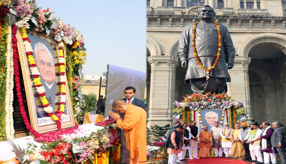 सीएम योगी ने कहा कि पूर्व प्रधानमंत्री ‘भारत रत्न’ अटल बिहारी वाजपेयी जी की आज पावन जयंती है। प्रदेश की राजधानी लखनऊ से प्रतिनिधित्व करते हुए उन्होंने प्रधानमंत्री के रूप में देश को विकास के नए विजन के साथ बढ़ाने का कार्य किया। यह वर्ष विशेष है, श्रद्धेय अटल बिहारी वाजपेयी जी की जन्मशताब्दी महोत्सव का आयोजन पूरे देश में हर्षोल्लास से मनाया जा रहा है। अटल जी की कविताओं के काव्य पाठ, उनके लेखन पर वाद-विवाद, पत्रकारिता, संसद और अंतरराष्ट्रीय मंचों पर अटल जी महत्वपूर्ण भाषण आदि को लेकर पूरे देश में शिक्षण-प्रशिक्षण संस्थाओं में अनेक कार्यक्रम भी हुए।