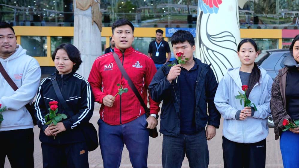 अरुणाचल के वेटलिफ्टरों का विमानतल पर रंगारंग स्वागत