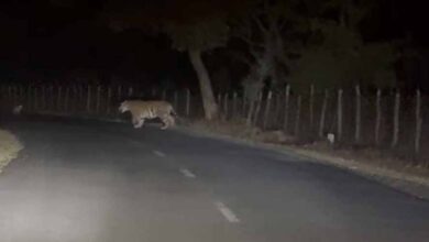 अमरकंटक में सड़क पर दिखा बाघ, गुजरते शिक्षक ने मोबाइल में कैद किया रोमांचक नज़ारा