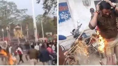 विजयवर्गीय के विरोध में कांग्रेस का प्रदर्शन बेकाबू, पुतले की जगह पुलिसकर्मी झुलसा
