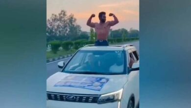 NH-9 पर सनरूफ स्टंट: युवक पर ₹21,500 का चालान
