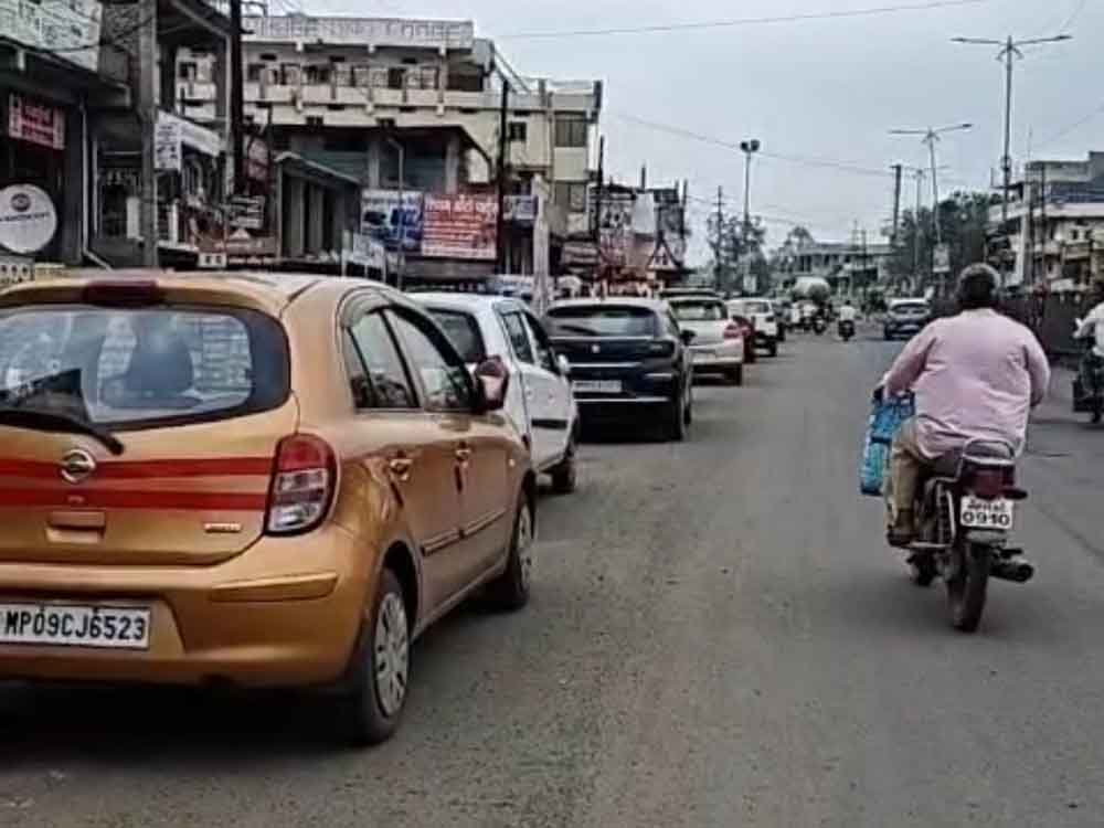 सर्विस लेन पर भारी वाहन खड़े, शहर में यातायात हुआ बाधित