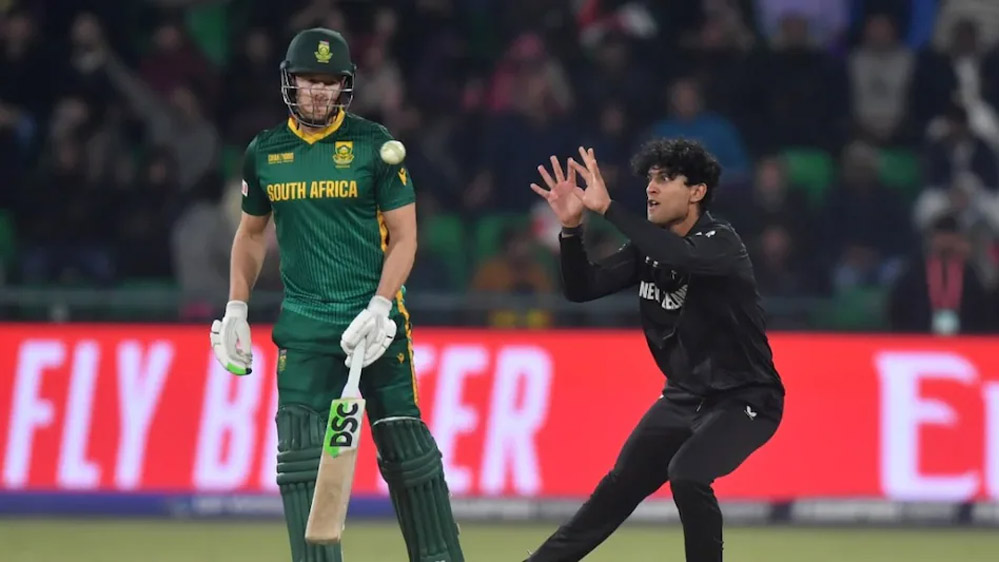 आईसीसी चैंपियंस ट्रॉफी का दूसरा सेमीफाइनल बुधवार को लाहौर में खेला गया. न्यूजीलैंड ने इस मैच में पहले बैटिंग करते हुए 6 विकेट पर 362 रन बनाए. यह चैंपियंस ट्रॉफी के इतिहास में किसी भी टीम का सबसे बड़ा स्कोर था. जाहिर है कि अगर न्यूजीलैंड को जीतना था तो उसे भी रिकॉर्ड बनाना था. दक्षिण अफ्रीका डेविड मिलर के शतक के बाद भी इतिहास नहीं रच सका. अफ्रीकी टीम 50 ओवर में 9 विकेट पर 312 रन ही बना सकी. इस तरह न्यूजीलैंड ने 50 रन से मैच अपने नाम किया. उसकी जीत के 3 हीरो रहे. पहले रचिन रवींद्र (108) और केन विलियम्सन (102) ने शतक बनाए. फिर मिचेल सैंटनर (3 विकेट)  ने शानदार गेंदबाजी कर अपनी टीम को जीत दिलाने में अहम भूमिका निभाई.