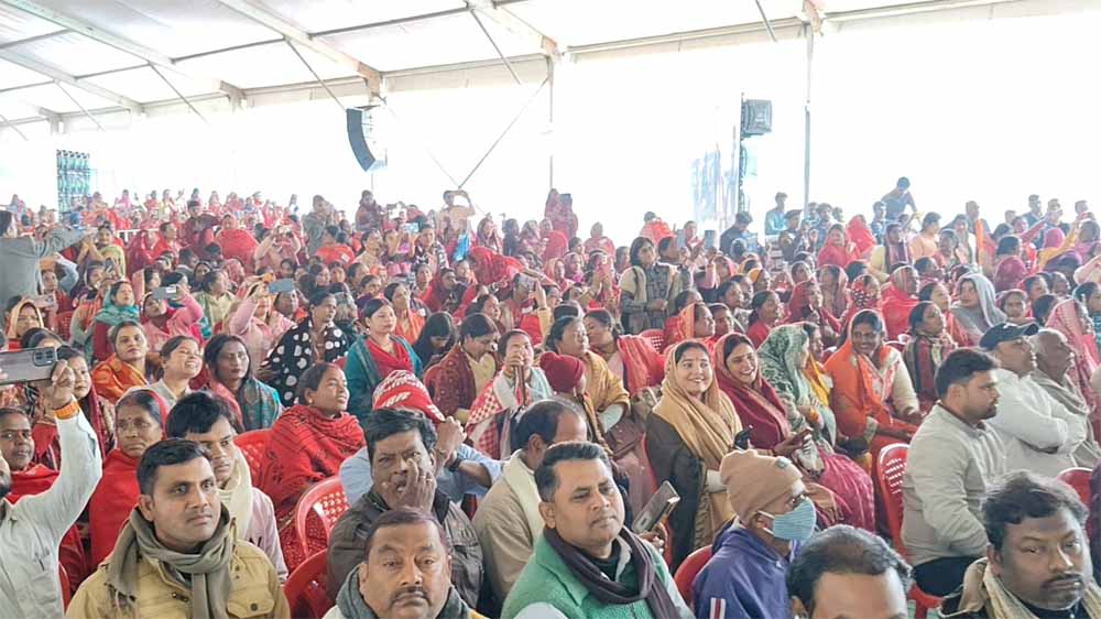 समृद्धि यात्रा के तहत बरौली हाईस्कूल में आयोजित सभा में मुख्यमंत्री नीतीश कुमार को सुनने के लिए बड़ी संख्या में महिलाएं पहुंचीं। मंच से संबोधित करते हुए मुख्यमंत्री ने जहां अपनी सरकार की उपलब्धियां गिनाईं, वहीं विपक्ष पर तीखा हमला भी किया।