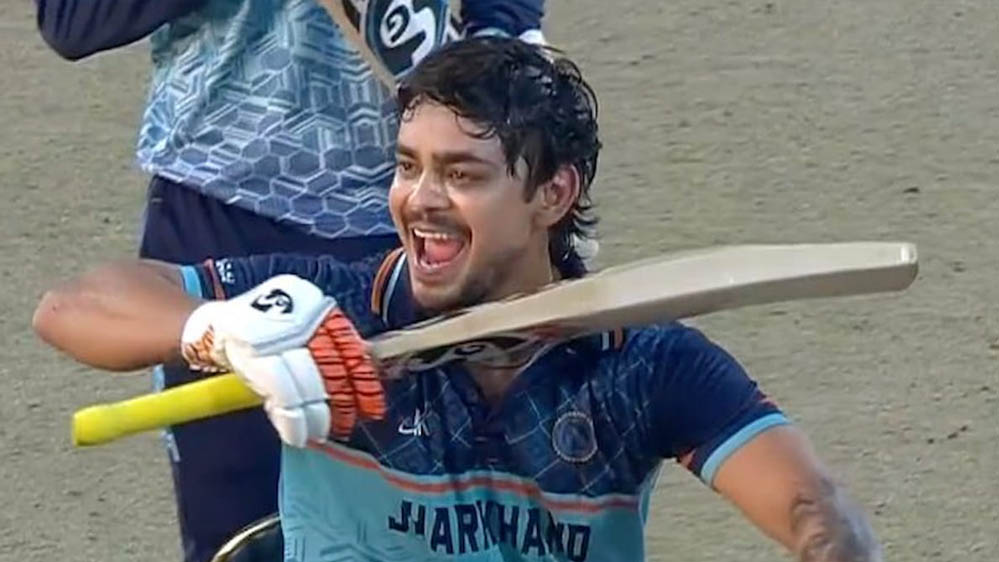 पुणे के महाराष्ट्र क्रिकेट एसोसिएशन (MCA) स्टेडियम में आयोजित इस मैच में ईशान ने सिर्फ 45 गेंदों पर शतक पूरा कर लिया. ईशान ने अंशुल कम्बोज की गेंद पर छक्का लगाकर अपना शतक पूरा किया. ईशान ने 49 गेंदों पर 101 रन बनाए, जिसमें 10 छक्के और 6 चौके शामिल रहे.