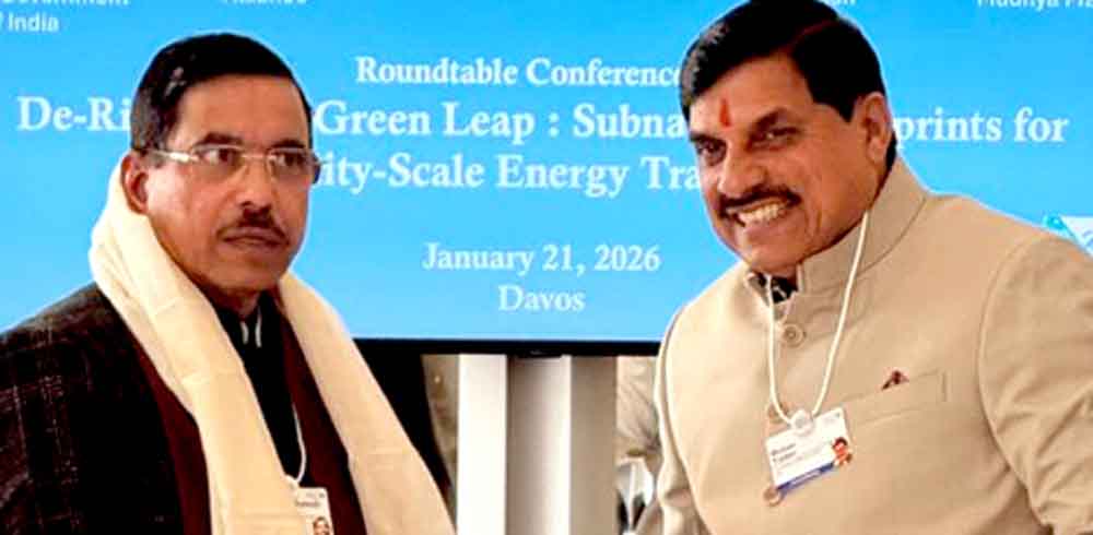 मुख्यमंत्री डॉ. मोहन यादव बुधवार को दावोस में वर्ल्ड इकोनॉमिक फोरम–2026 में शामिल होने पहुँचे। मुख्यमंत्री डॉ. यादव ने "डी-रीस्किंग द ग्रीन लीप: सब नेशनल ब्लू प्रिंट फॉर यूटिलिटी स्केल एनर्जी ट्रांजीशन" विषय पर आयोजित उच्च स्तरीय राउंड टेबल मीटिंग में भागीदारी की। मुख्यमंत्री डॉ. यादव ने राज्य की ऊर्जा यात्रा में नवकरणीय ऊर्जा की केंद्रीय भूमिका पर प्रकाश डाला। उन्होंने कहा कि नवकरणीय ऊर्जा मध्यप्रदेश के समावेशी और टिकाऊ विकास की आधारशिला है। प्रधानमंत्री श्री नरेन्द्र मोदी के मार्गदर्शन को प्रेरणा बताते हुए मुख्यमंत्री डॉ. यादव ने कहा कि राज्य स्वच्छ, सस्ती और भरोसेमंद ऊर्जा की दिशा में तेज़ी से आगे बढ़ रहा है।
