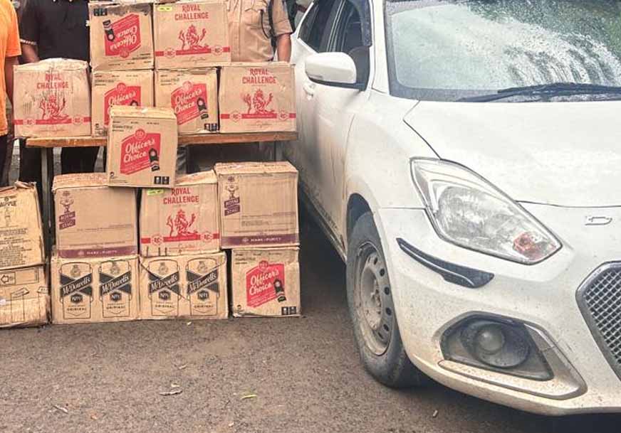 भोपाल की पॉश कॉलोनी में बड़ी कार्रवाई: साढ़े तीन लाख की अंग्रेजी शराब जब्त, तस्कर कार छोड़ कर फरार