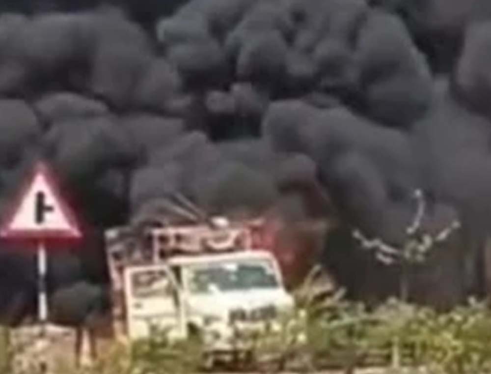रायपुर में बड़ा हादसा: रोड मार्किंग मशीन में ब्लास्ट, आसमान में उठा धुएं का गुबार
