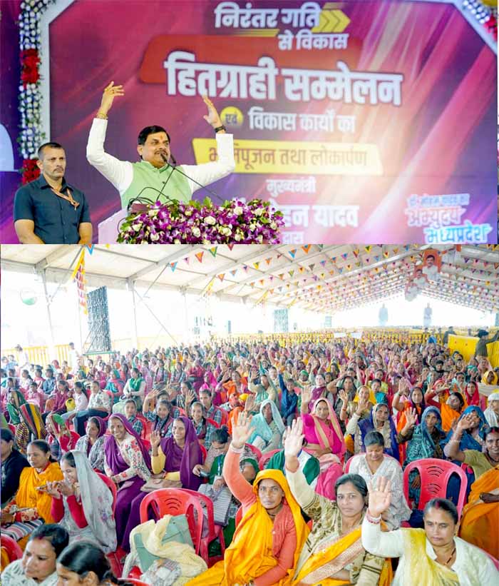 मुख्यमंत्री डॉ. यादव बुधवार को पन्ना जिले की पवई विधानसभा क्षेत्र की ग्राम पंचायत शाहनगर में हितग्राही सम्मेलन को संबोधित कर रहे थे। मुख्यमंत्री डॉ. यादव ने यहां करीब 83 करोड़ रूपए की लागत वाले 14 विकास कार्यों का लोकार्पण एवं भूमिपूजन किया। इसमें 9 करोड़ रूपए की लागत से बनी बिसानी-श्यामगिरी-कल्दा-सलेहा वाया मैन्हा मार्ग के उन्नयन कार्य का लोकार्पण एवं 74 करोड़ रूपए की लागत से बनने वाले 13 विकास कार्यों का भूमिपूजन शामिल हैं। इसके अंतर्गत मुख्यमंत्री ने 4.25 करोड़ रूपए की लागत से बनने वाले पवई में तिघरा बैराज का भूमिपूजन किया। मुख्यमंत्री डॉ. यादव ने दीप प्रज्ज्वलन एवं कन्या पूजन कर हितग्राही सम्मेलन की शुरूआत की। कार्यक्रम का शुभारंभ वंदे मारतम् गायन के साथ हुआ। मुख्यमंत्री डॉ. यादव ने कार्यक्रम स्थल पर विभिन्न विभागों द्वारा लगाई गई विकास प्रदर्शनी का अवलोकन किया।