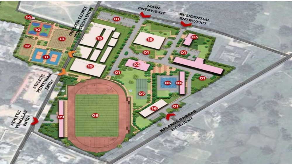 एथलेटिक्स ट्रैक एवं पवेलियन, बास्केटबॉल कोर्ट, कबड्डी और खो-खो के मैदान,आधुनिक स्विमिंग पूल एवं ड्रेस चेंजिंग रूम, वॉलीबॉल ग्राउंड , जंपिंग गेम और खेल उपकरण इन सभी व्यवस्थाओं से खिलाड़ियों को बड़े स्तर पर प्रशिक्षण और प्रतियोगिताओं में भाग लेने का अवसर मिलेगा।