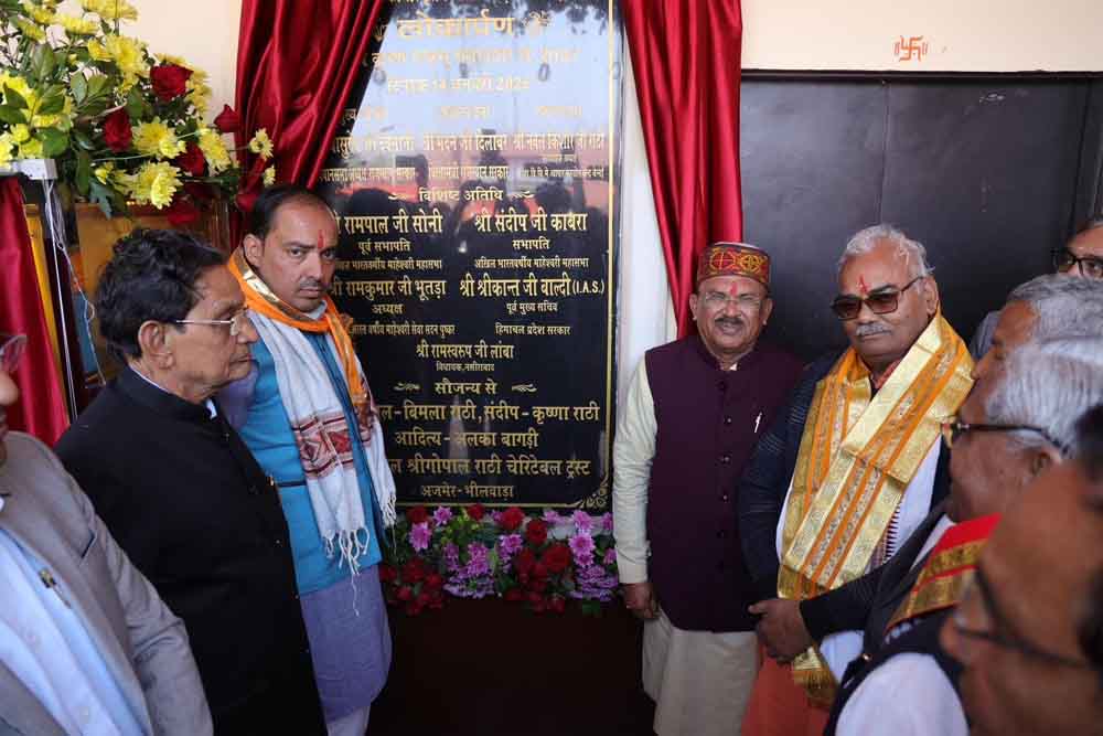 विधानसभा अध्यक्ष श्री वासुदेव देवनानी एवं शिक्षा एवं पंचायतीराज मंत्री श्री मदन दिलावर ने अजमेर के पास खेड़ा श्रीनगर में मंगलवार को भामाशाह श्री गोपाल राठी परिवार द्वारा 2.64 करोड़ रूपए की लागत से निर्मित चंदनमल रामनारायणी राठी राजकीय प्रवेशिका संस्कृत विद्यालय के भवन का लोकार्पण किया।