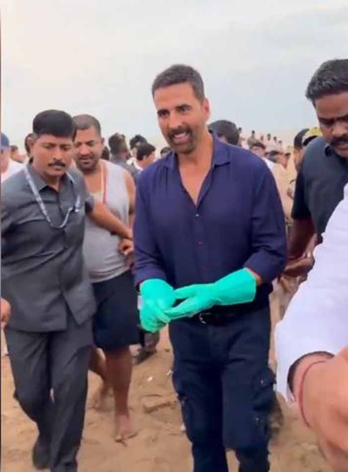 बॉलीवुड अभिनेता अक्षय कुमार को रविवार को मुंबई के जुहू बीच पर देखा गया। यहां वे एक सफाई अभियान में शामिल होने पहुंचे थे। इस दौरान उन्होंने समुद्र तट की सफाई की और लोगों को खास संदेश भी दिया। दरअसल, मुंबई के जुहू बीच पर गणपति विसर्जन के बाद कूड़ा-कचरा फैल जाता है। इसी कारण उसकी सफाई के लिए अभिनेता अक्षय कुमार भी पहुंचे। सफाई अभियान के दौरान उन्होंने लोगों को स्वच्छता के प्रति जागरूक भी किया।