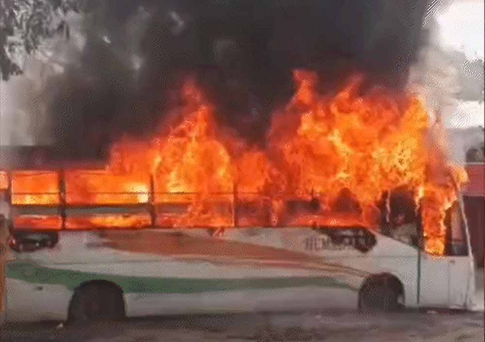 बारातियों से भरी बस में अचानक आग, शॉर्ट सर्किट की आशंका से मचा हड़कंप