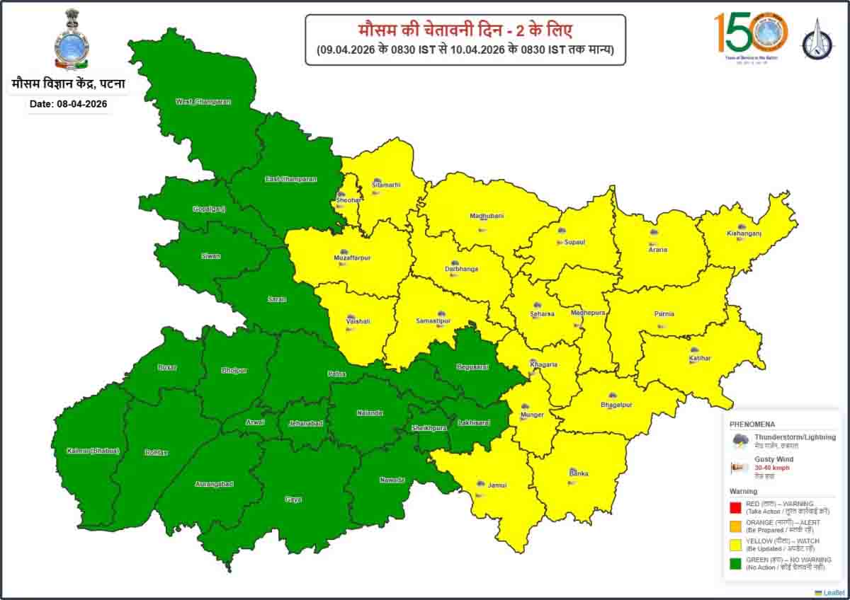 बिहार में बदला मौसम का मिजाज, 9 अप्रैल तक बारिश और ठनका का येलो अलर्ट, 50km की रफ्तार से चलेंगी हवाएं